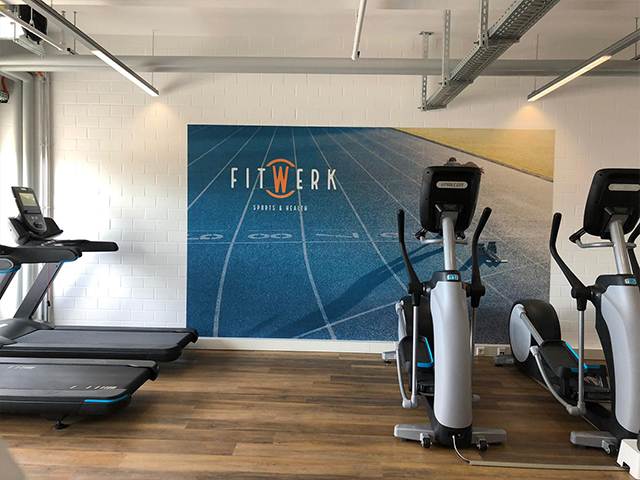 Unsere Wanddrucke und Bodendrucke bringen Motivation und Orientierung in Ihr Studio. Die Lösungen sind langlebig, auf Wunsch B1-zertifiziert, rutschhemmend erhältlich und unterstützen mit akustisch wirksamen Systemen eine angenehme Trainingsatmosphäre.