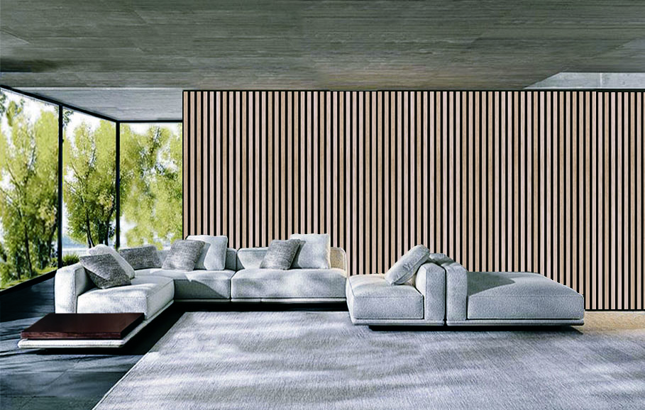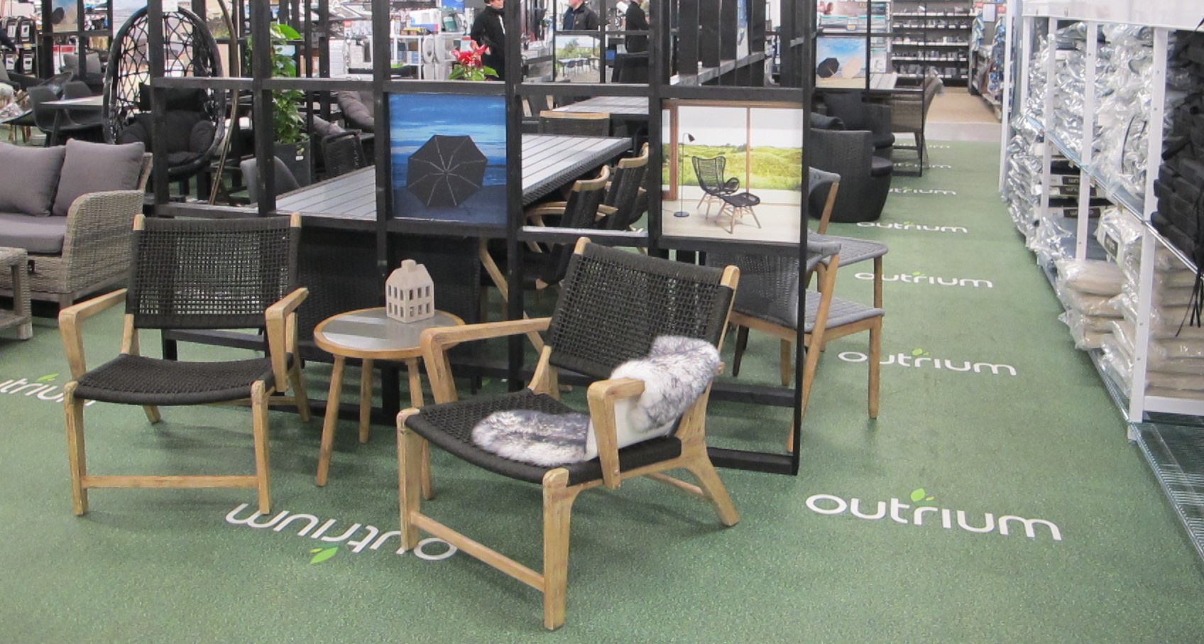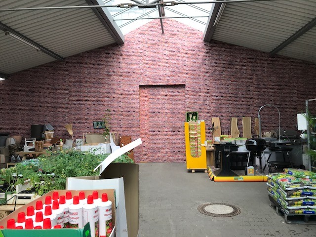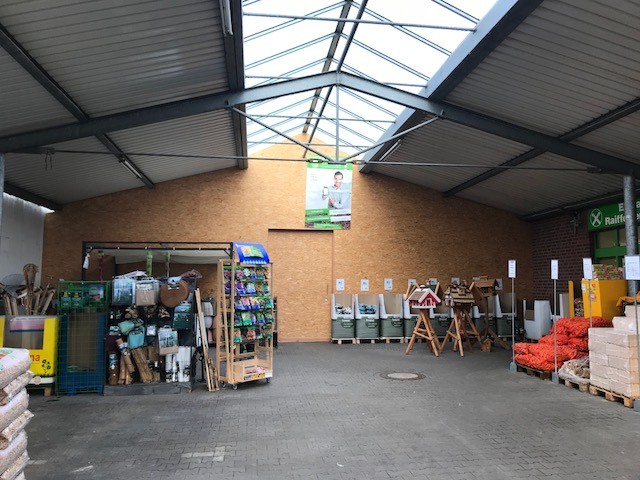 Gestaltung einer Verkaufshallenwand mit Akustikvlies zur Schall & Lärmdämmung.