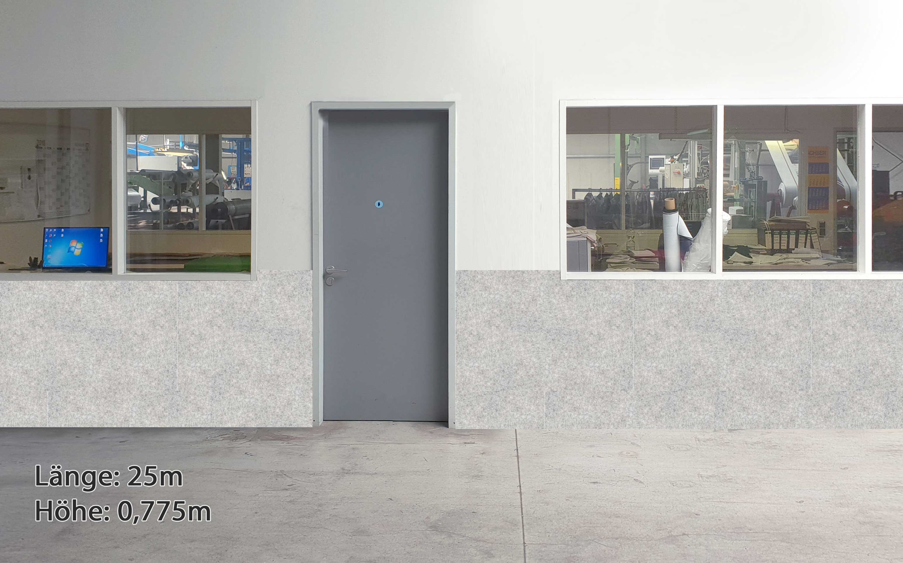 Das ca. 2mm starke Polyester Vlies nimmt problemlos Stöße auf ohne sichtbare Spuren zu hinterlassen. Durch die freie farbliche Gestaltung können Sie Bereiche in Ihrer Firma optisch erkennbar machen oder auch Erlebniswelten schaffen.